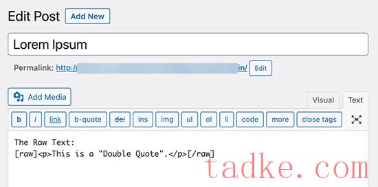 现在要添加跳过WordPress格式,您需要将该HTML块添加到您的WordPress帖子编辑器中。在文章编辑器中,您可以将未格式化的文本或代码添加到原始的快捷代码中。