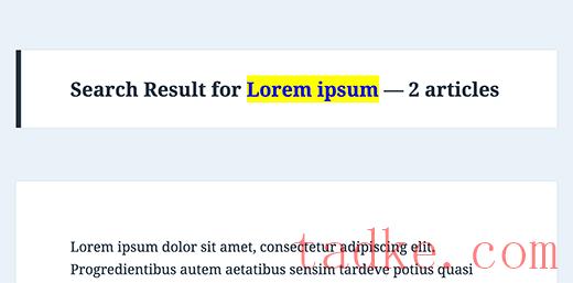您还可以通过向主题的样式表中添加.Search-Terms css类来突出显示搜索词。下面是一个简单的css,可以帮助您入门:
