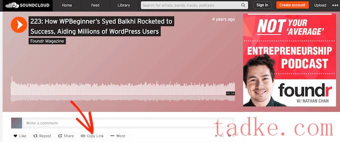 您可以使用与嵌入歌曲或播放列表完全相同的方式添加SoundCloud频道。只需访问SoundCloud中的频道并复制URL即可。