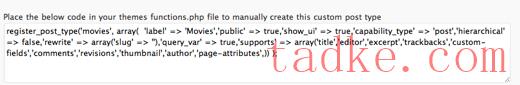 Custom Post Type UI是WebDevStudios的Brad Williams开发的一个插件,它允许您轻松创建自定义帖子类型和分类。这个插件最酷的功能之一是它生成一个代码来创建自定义的帖子类型,这样你就可以将它粘贴到你的主题的Functions.php文件。这个插件的一个奇怪之处是不能在所有post_type之间共享分类。