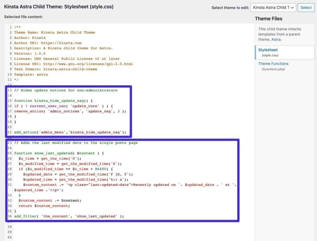 如果你想在 functions.php 文件中添加代码片段,你应该始终使用一个子主题,这样当你更新你的主题时,你的改动不会被覆盖掉。我们还建议在添加代码片段之前备份您的网站,并尽可能在一个暂存网站上测试它们。